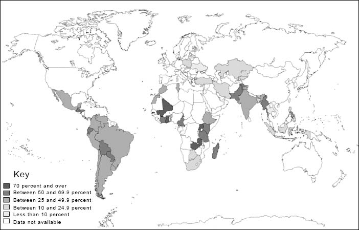 This is a map from 2001 using ILO data on the informal sector while given below is a more recent one which maps the percentage of the economy dependent on the informal sector.