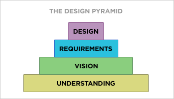 And before we can envision the potential solution space within which the requirements can be framed for the ultimate manifestation in the form of design, we must understand not only the what and how but also the why, when and where.The most powerful concept in this diagram, imho, is the fundamental importance given to ‘understanding’.