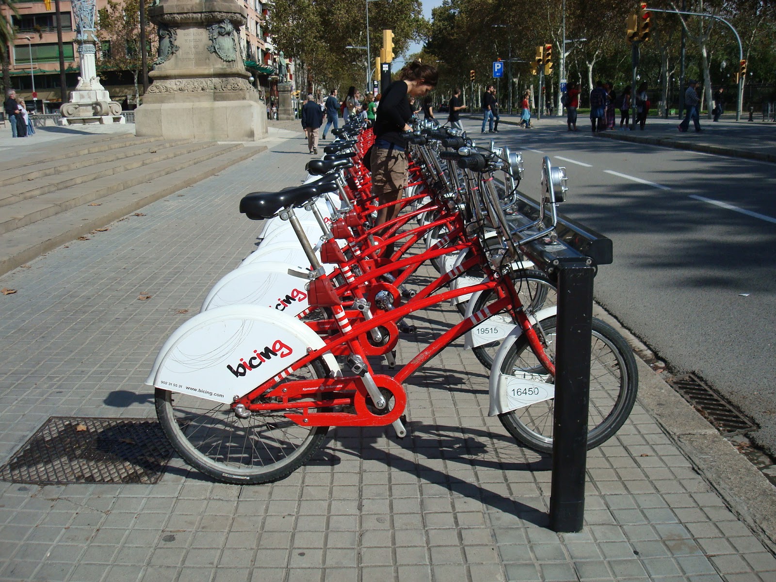 In the same parking lot, I also noticed these Smart cars from the Car2Go service, a pay for use rental car service. A similar service is also becoming popular in Tallinn, Estonia where you can access the vehicle directly via your mobile phone. Rent instead of purchase business models are popping up all over. Below is the line of bicycles waiting for customers in Barcelona – the only downside here is that registration for this service is limited only to ID holding residents of the city.