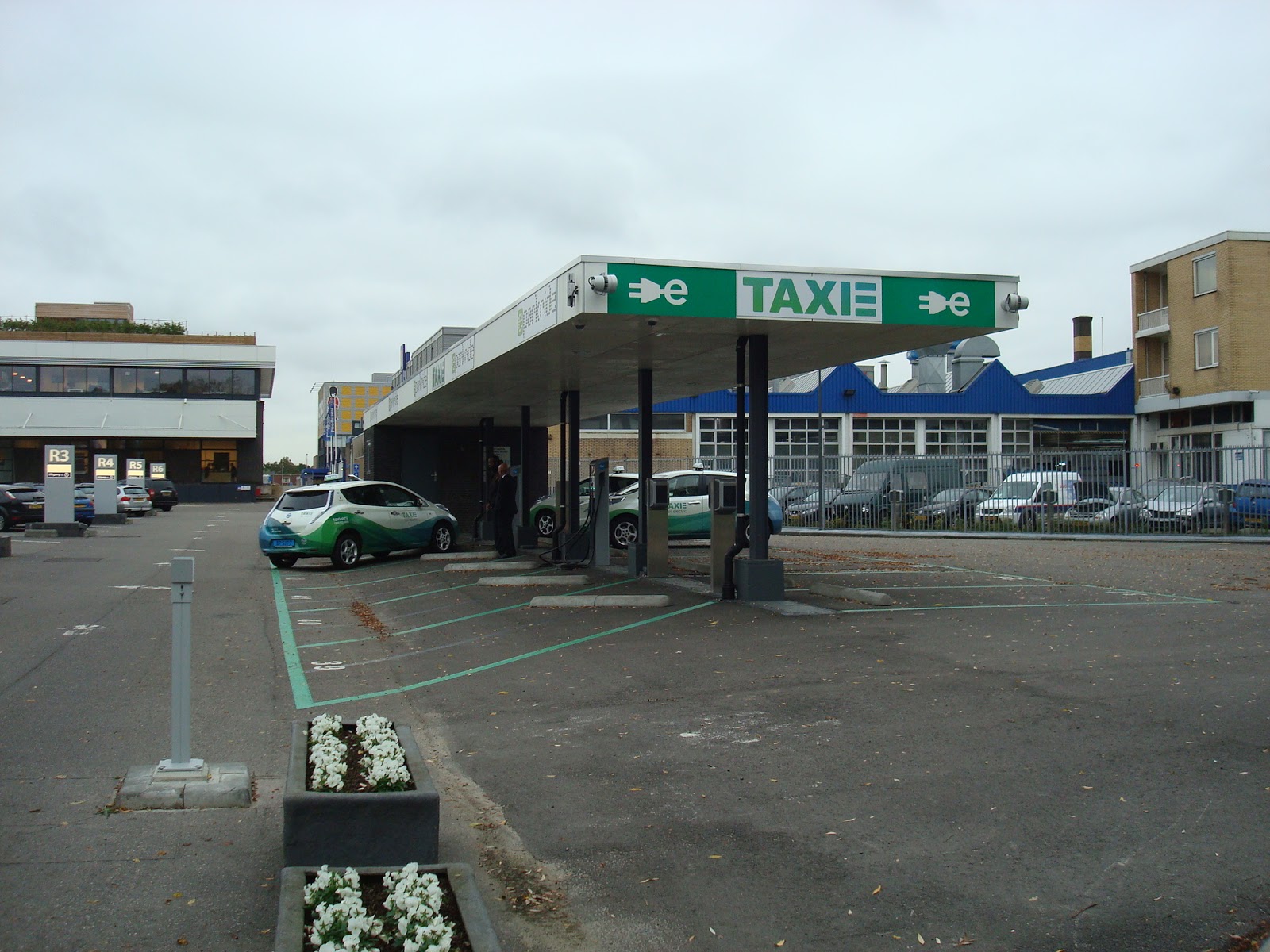 Spotted outside the Zuid Park Business Center in Amsterdam, this is a taxi stand cum charging station for electric vehicles. And its not the only one, as I saw the same taxis waiting at Schiphol airport. They were asking half the price of a regular taxi for the trip to the center of town.