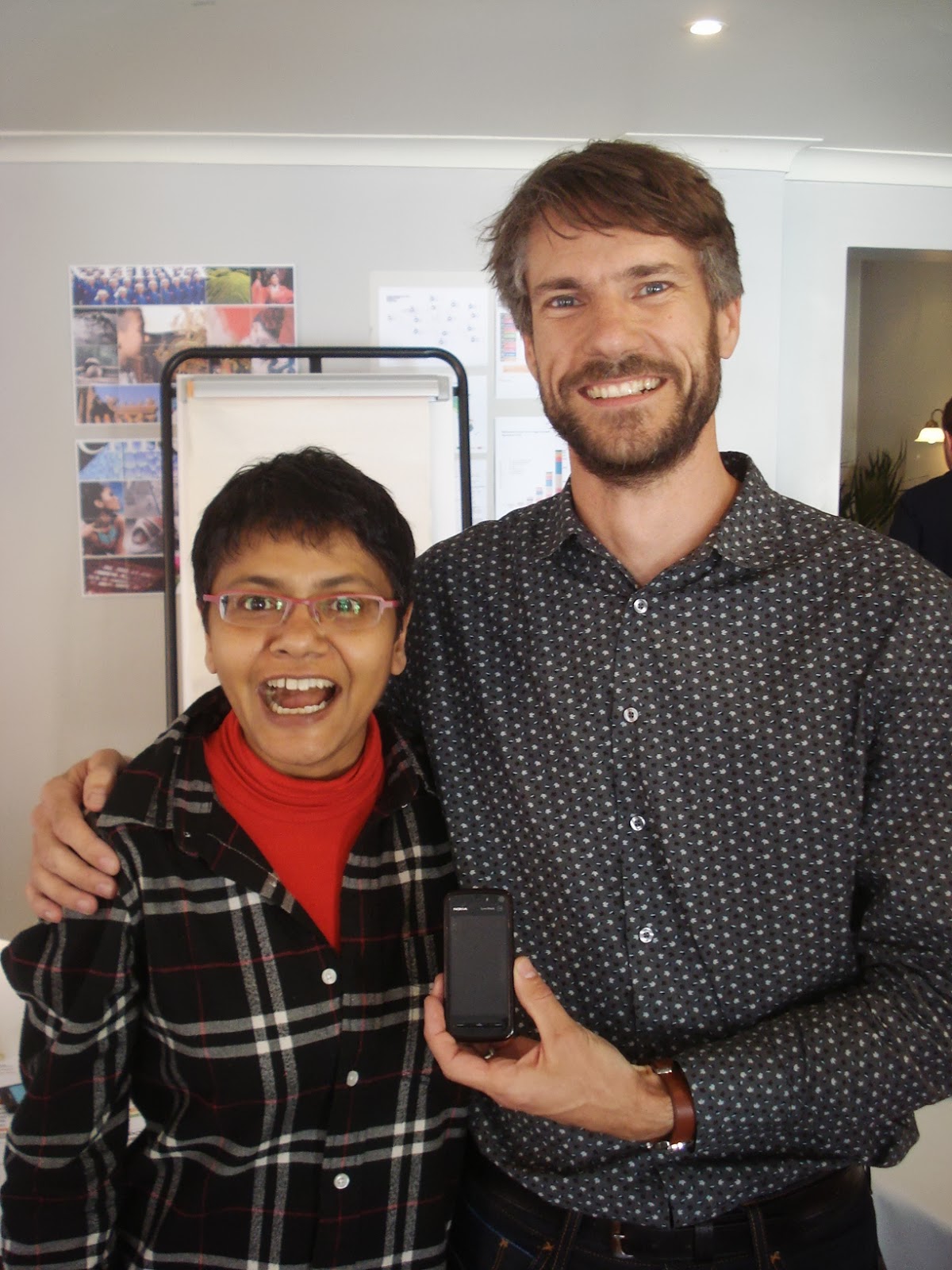 | OMG I can’t breathe! Photographed hyperventilating with the guy responsible for my phone’s design, Peter Griffith at the Nokia “Connecting the Next Billion” Emerging Markets Strategy Workshop in London, May 2011. |